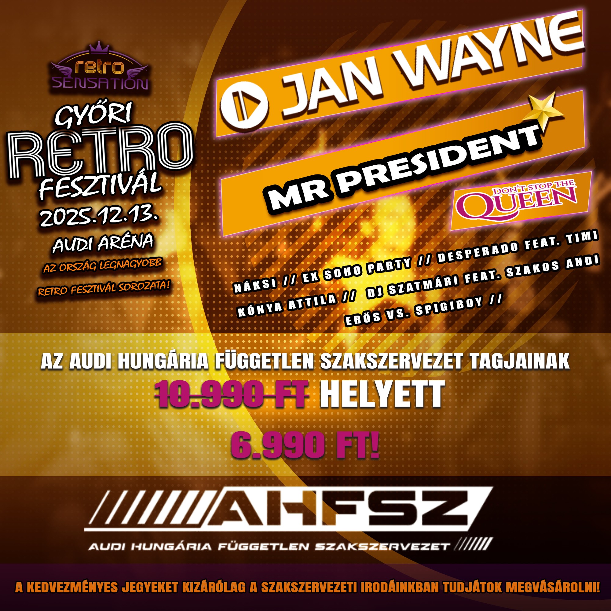 Az Audi Arénában megrendezésre kerűlő Győri Retro Fesztiválra hívjuk fel a figyelmetek!